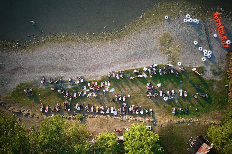 Il contesto naturale cambia completamente la dinamica dell’evento: le persone si rilassano, si muovono in modo più libero e le interazioni diventano più spontanee.