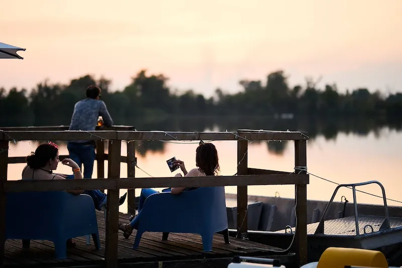 Un grande prato, il lago al tramonto, musica, luci e un’atmosfera rilassata che accompagna l’evento dal pomeriggio fino alla sera.